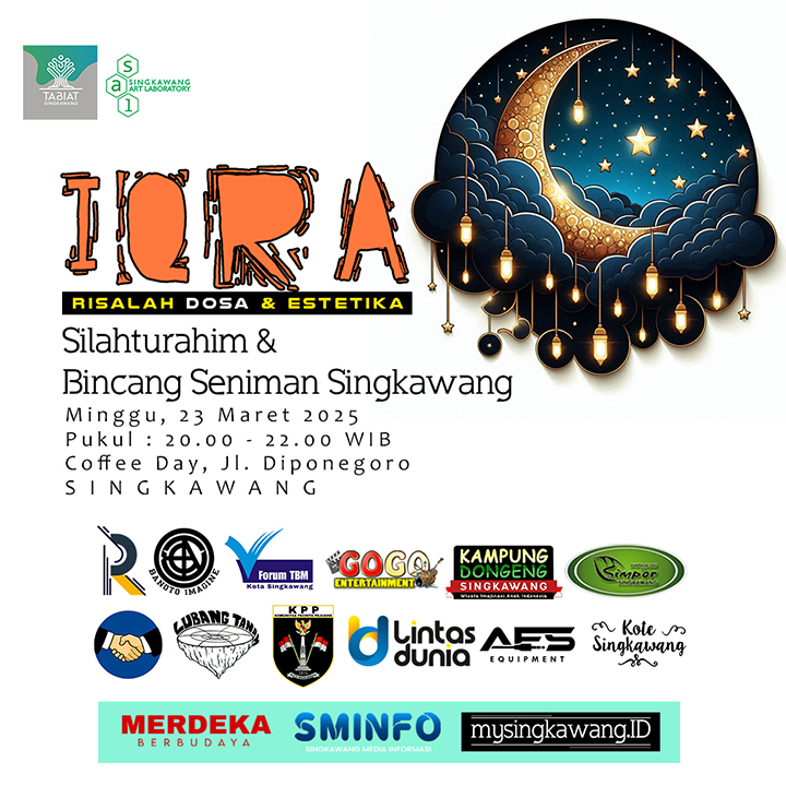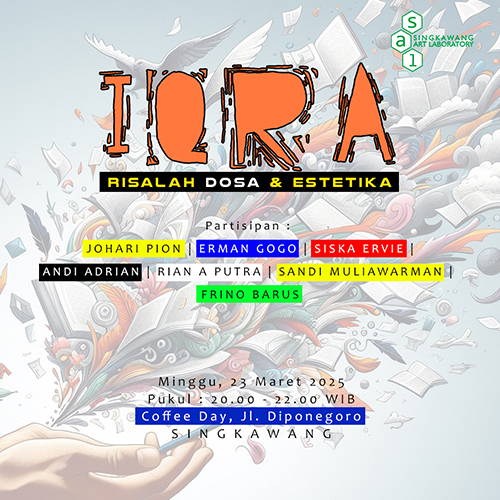 Singkawang Art Laboratory (SAL), mengundang siapa saja untuk menyaksikan dan terlibat dalam pentas sastra ramadhan Singkawang “IQRA : Risalah Dosa & Estetika” di Coffee Day, Jalan Diponegoro, Singkawang, Minggu, 23 Maret 2025, pukul 20.00 – 22.00 WIB. Acara ini merupakan tahun ke-2 yang bertujuan memaknai bulan suci ramadhan lewat pembacaan sastra.